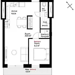 Le domicile de 42 m² comprend un balcon avec un lave-linge pour un plus grand confort. Les clients sont offerts 1 salle de bain. Un sèche-cheveux et des draps de bain sont également accessibles.